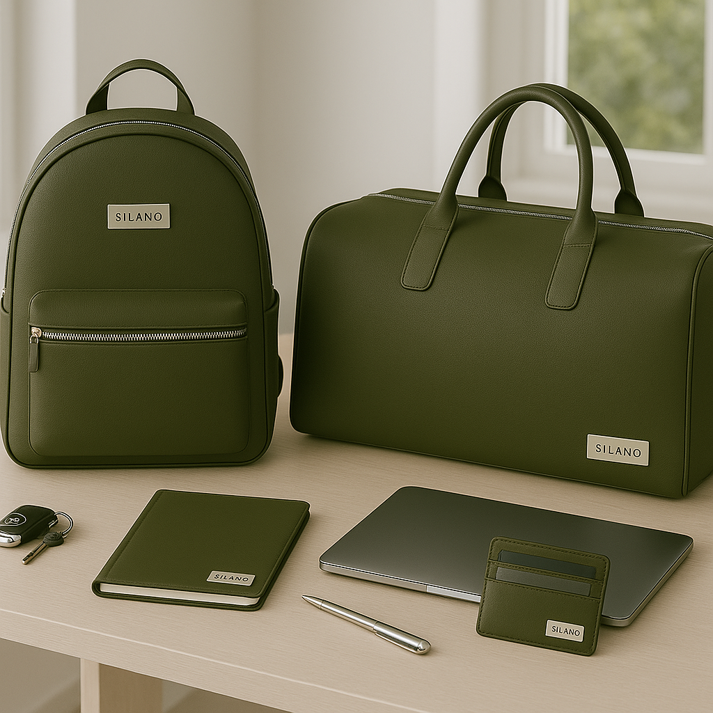 Each set is meticulously fashioned from premium vegan leather, blending timeless style with contemporary practicality.